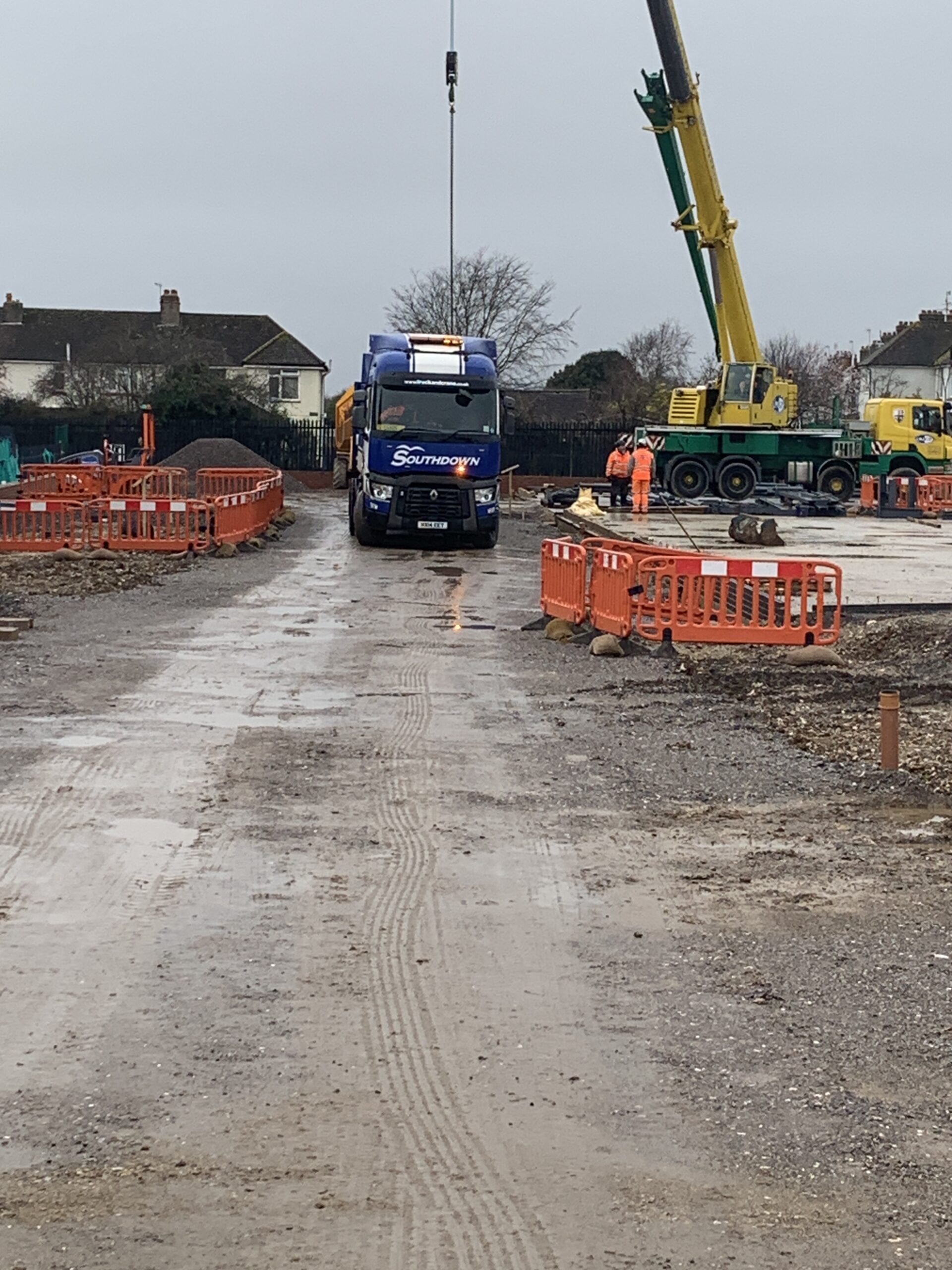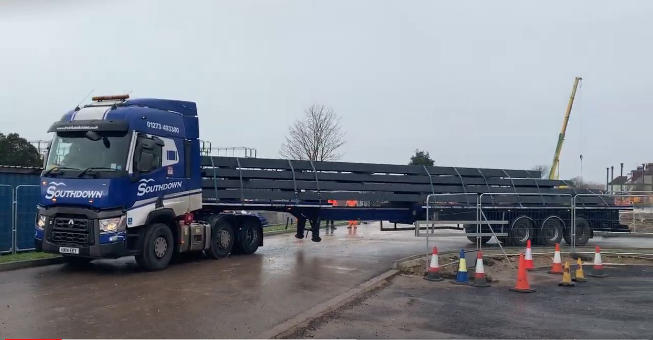Using a lorry cab and stretch trailer, the Southdown team deliver a load of 20+ metre beams for a construction project